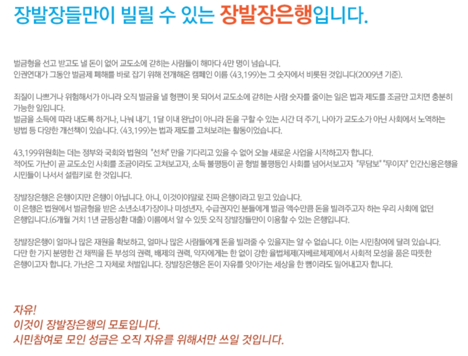 장발장 은행에대해 많은 관심이 쏠리고있는데요. 장발장 은행이란 벌금형을 선고받은 사람이 형편이 어려워 벌금을 내지못하여 교도소에 수감되는것을 막기위해 최대300만원까지 무이자, 무담보로 대출해주는 은행을 장발장은행이라고 부르는데요. 단순 벌금형이지만 생계가어려워 내지못하는 사람들을 위해 만들어졌으며, 모든 대출금액은 시민들의 기부를통해 모아진 성금으로 운영이됩니다.