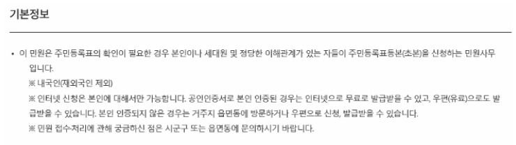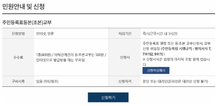 주민등록등본 인터넷발급시 발생하는 수수료는 0원이며, 방문시 400원의 수수료, 이해관계인의 등,초본 교부는 500원의 수수료가 발생하게됩니다.