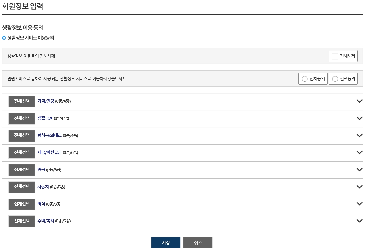 생활정보 이용동의 이 항목은 예전에는 없었으나 20년도에 새롭게 나온것같습니다. 만약 생활정보 이용에 동의를하신다면 이용을 하셔도되고 불필요하다면 안하셔도됩니다. 정부24홈페이지에서 어떠한 생활정보 서비스를 제공해주는지 확인해보실수있습니다.